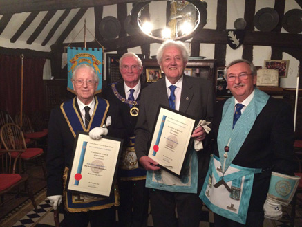 De Montfort Lodge's October meeting was very special in that the main event was the presentation of two 60 year certificates by the the Deputy Provincial Grand Master RW.Bro M.C.Morris to W.Bro G.Mucklow and Bro D.Williams.